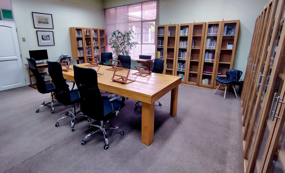 Esta biblioteca se especializa en áreas como artes visuales, diseño gráfico, estética e historia del arte, y está estrechamente vinculada al legado de la escultora Marta Colvin, cuya antigua residencia se ubicaba en el mismo terreno donde hoy se encuentra el campus. Este espacio honra la memoria de Marta Colvin y promueve el estudio y la apreciación del arte en la región.